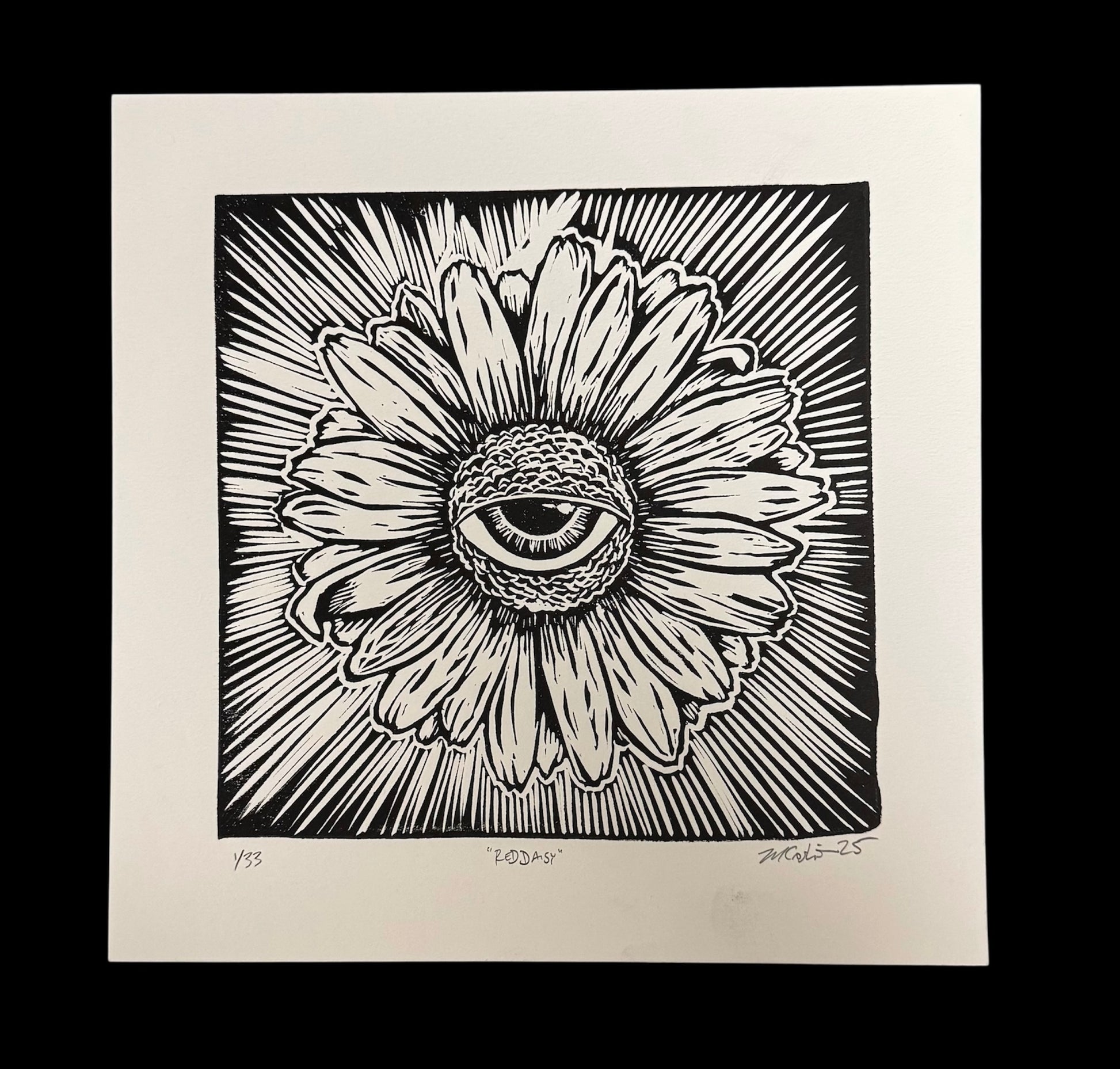 Daisy, Red Daisy- OG edition Linocut print